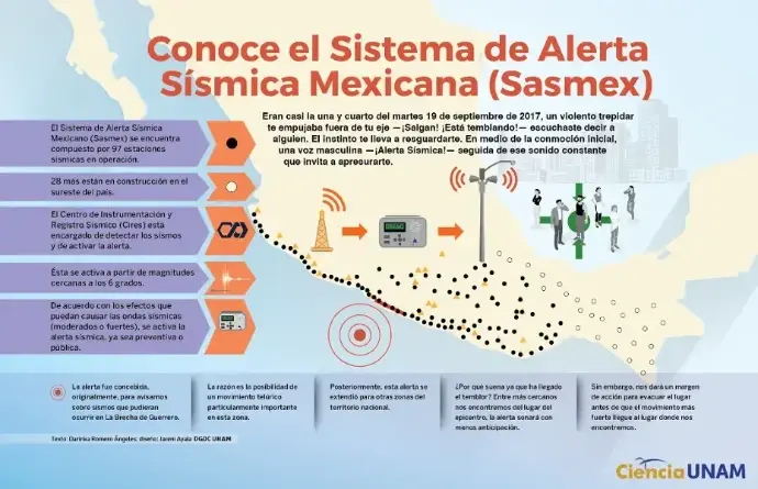 Una alerta sísmica funciona con el respaldo de los datos del sistema sismológico nacional. El Sistema Sismológico nacional tiene como principal objetivo generar una red de monitoreo de sismos que actúe como medida preventiva para los eventos sísmicos que suceden en el país. Este organismo tiene sus propios sensores que garantizan el aviso oportuno y seguro de la actividad sísmica cercano a 6 grados